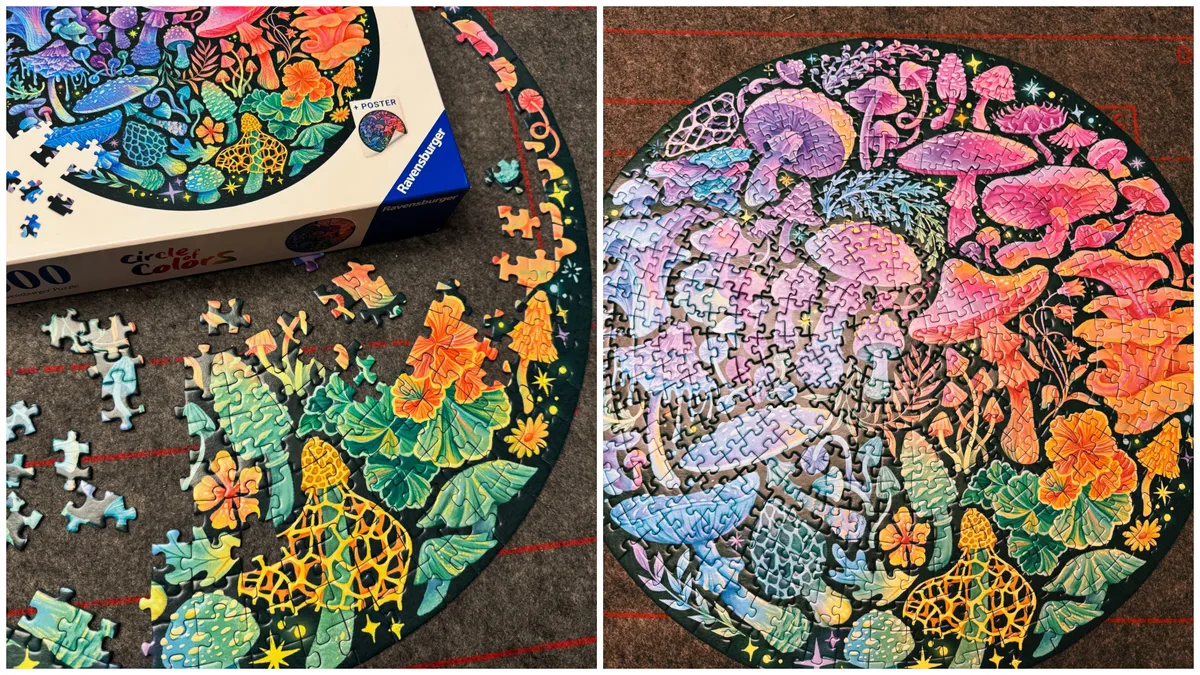 For May, I chose the Ravensburger Circle of Colors Mushrooms puzzle. I immediately fell in love with the colors! It was quick to complete, as it consists of 500 pieces. I thought it was a nice change from the 1000-piece puzzles.