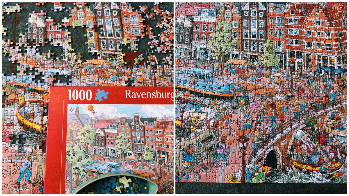 Something completely different for August! The Ravensburger Fleroux Amsterdam puzzle. This one took me a little longer, because it involves quite a bit of searching among all those little people.
