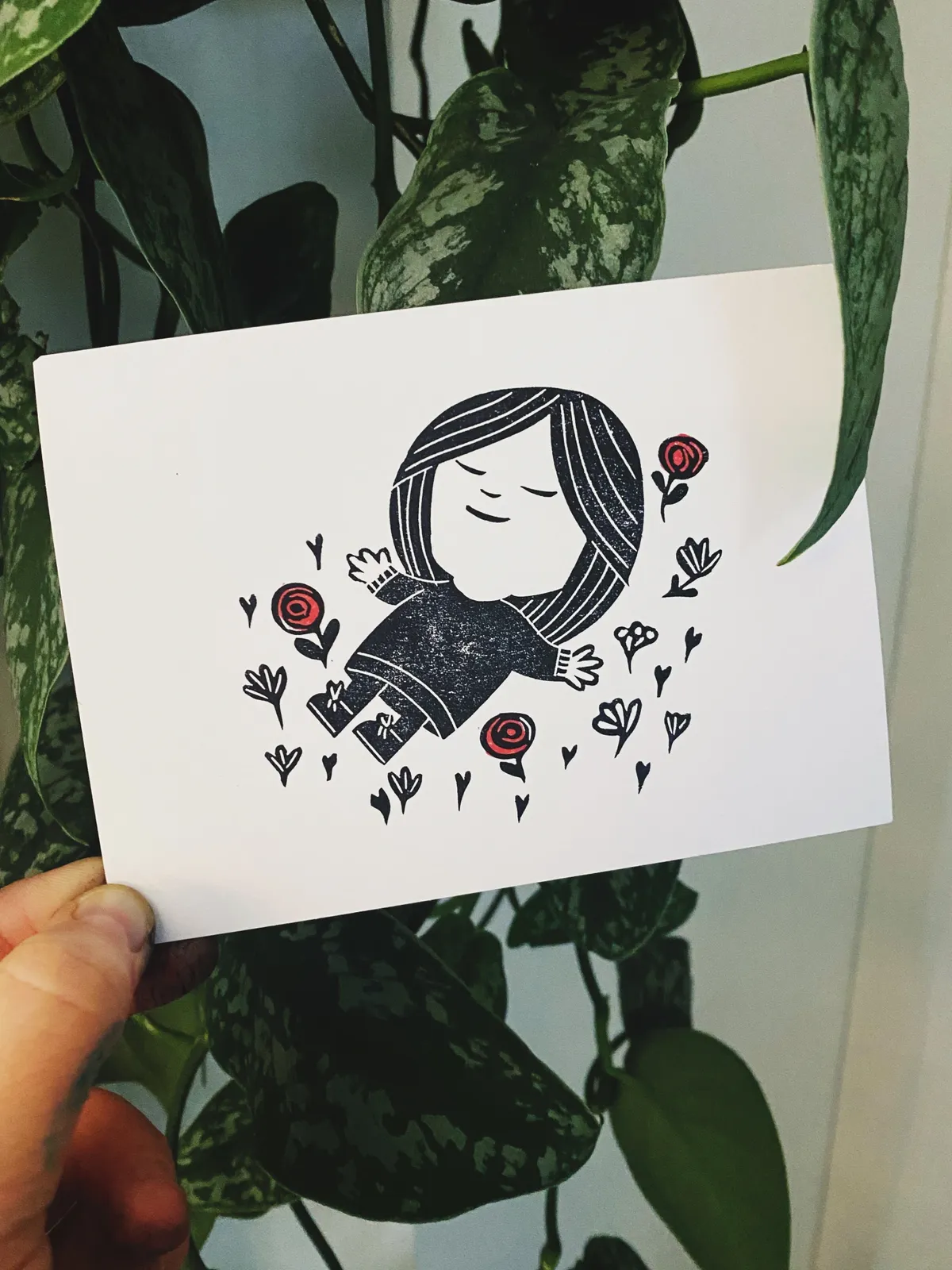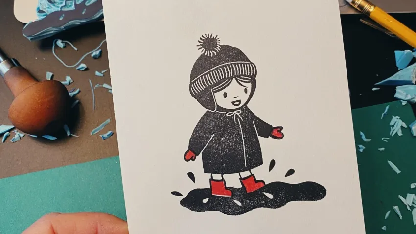 This print is based on a photo from last fall, when we jumped in puddles during a walk. She loves playing with water and seizes every opportunity to do so!