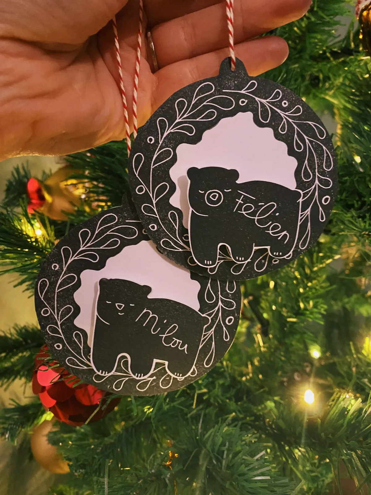 It's so nice when people come back for a second time to have something made! Milou's birth announcement card is only a few weeks old, and now she's getting a personalized Christmas bauble for her first Christmas (together with her big sister). How lovely : D