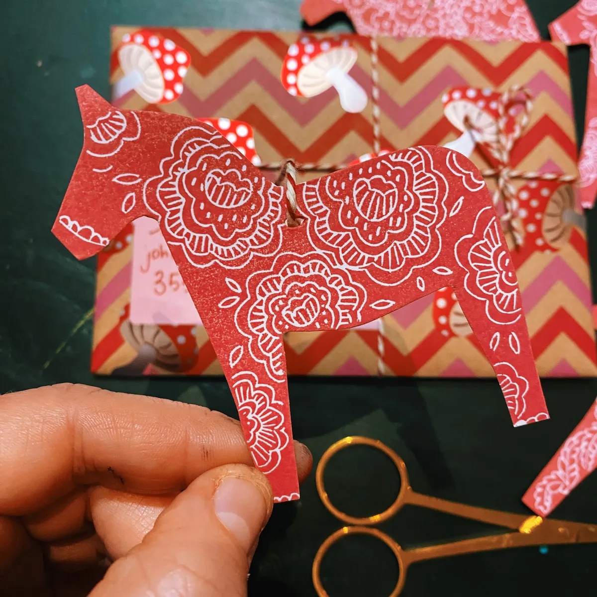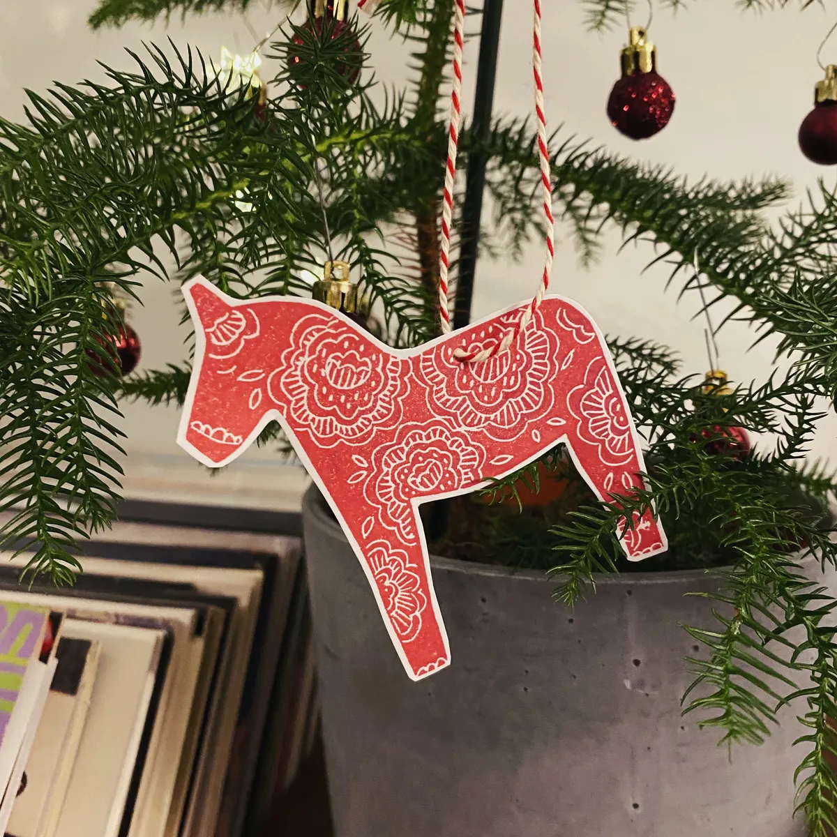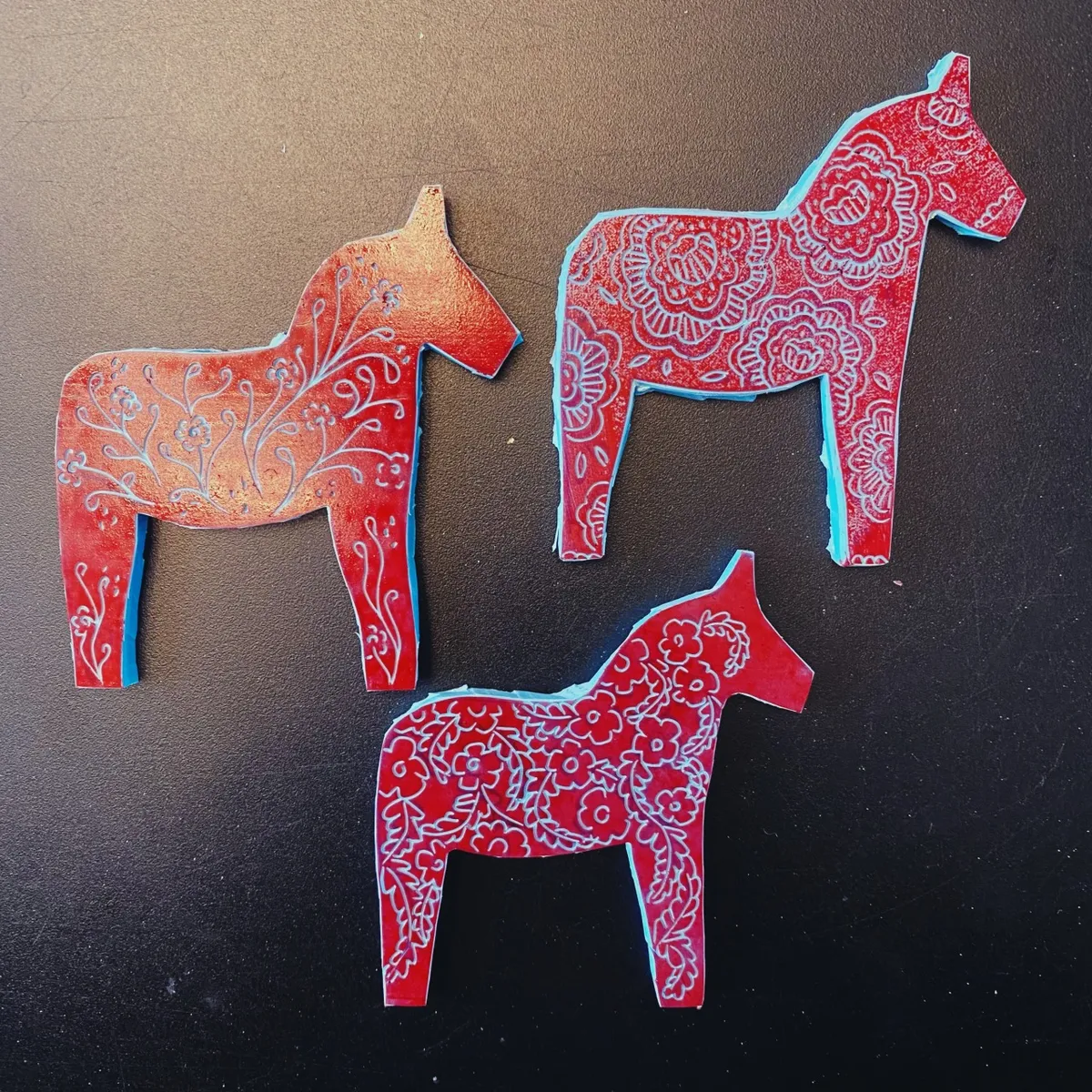 I've always liked them, the horses. Their distinctive red color and paintings. For my Dala series, I gave them my own twist, with (how could it be otherwise) flowers!