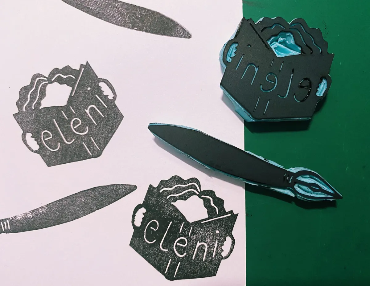 For the lovely Eleni and Liesbet I made these personal stamps. Coincidentally, they both have dark wavy hair!