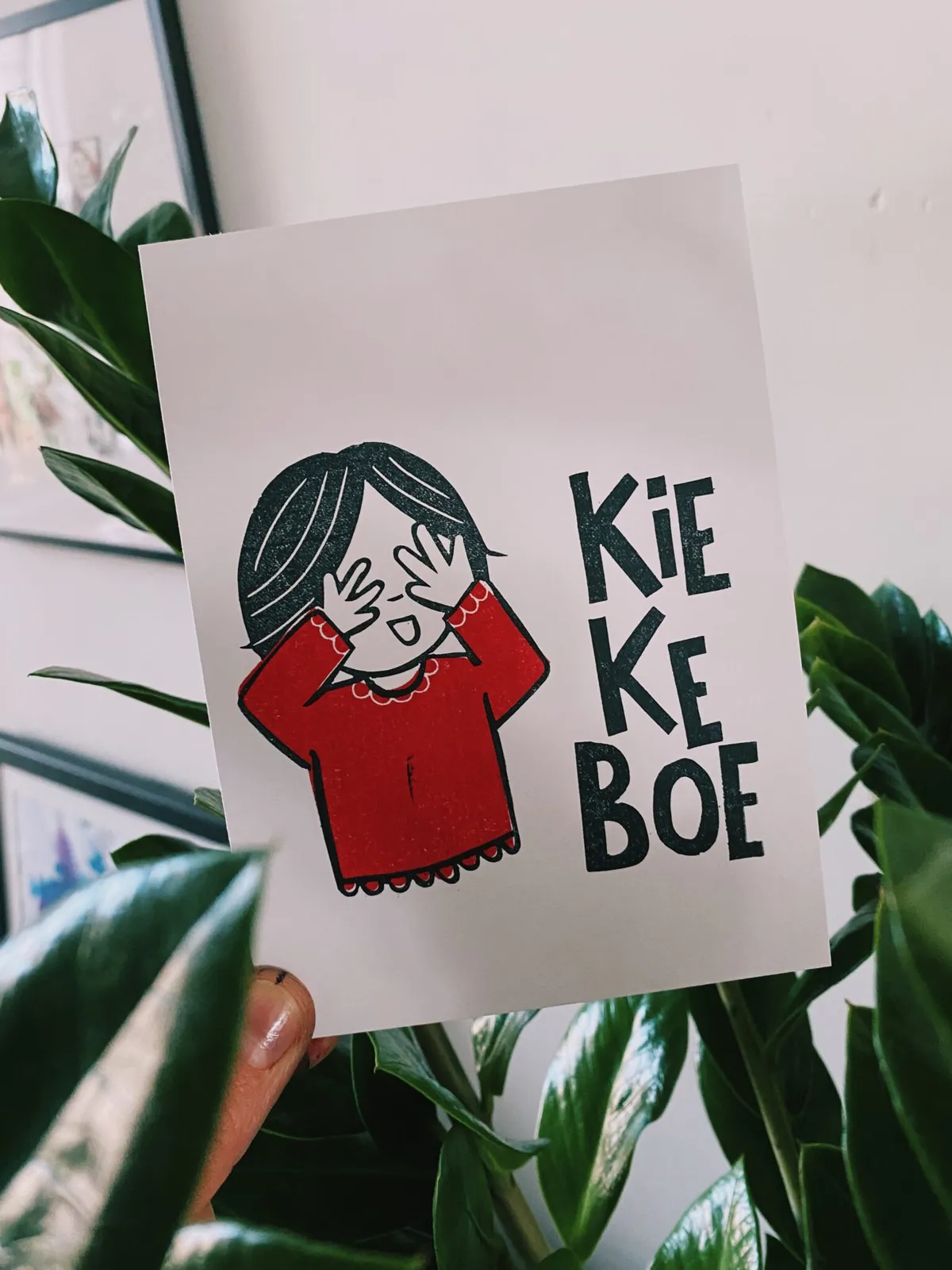 The first print is the daughter running after birds. She calls out “oogel” (vogel, bird) or “pietje” (Limburgish dialect for bird).
