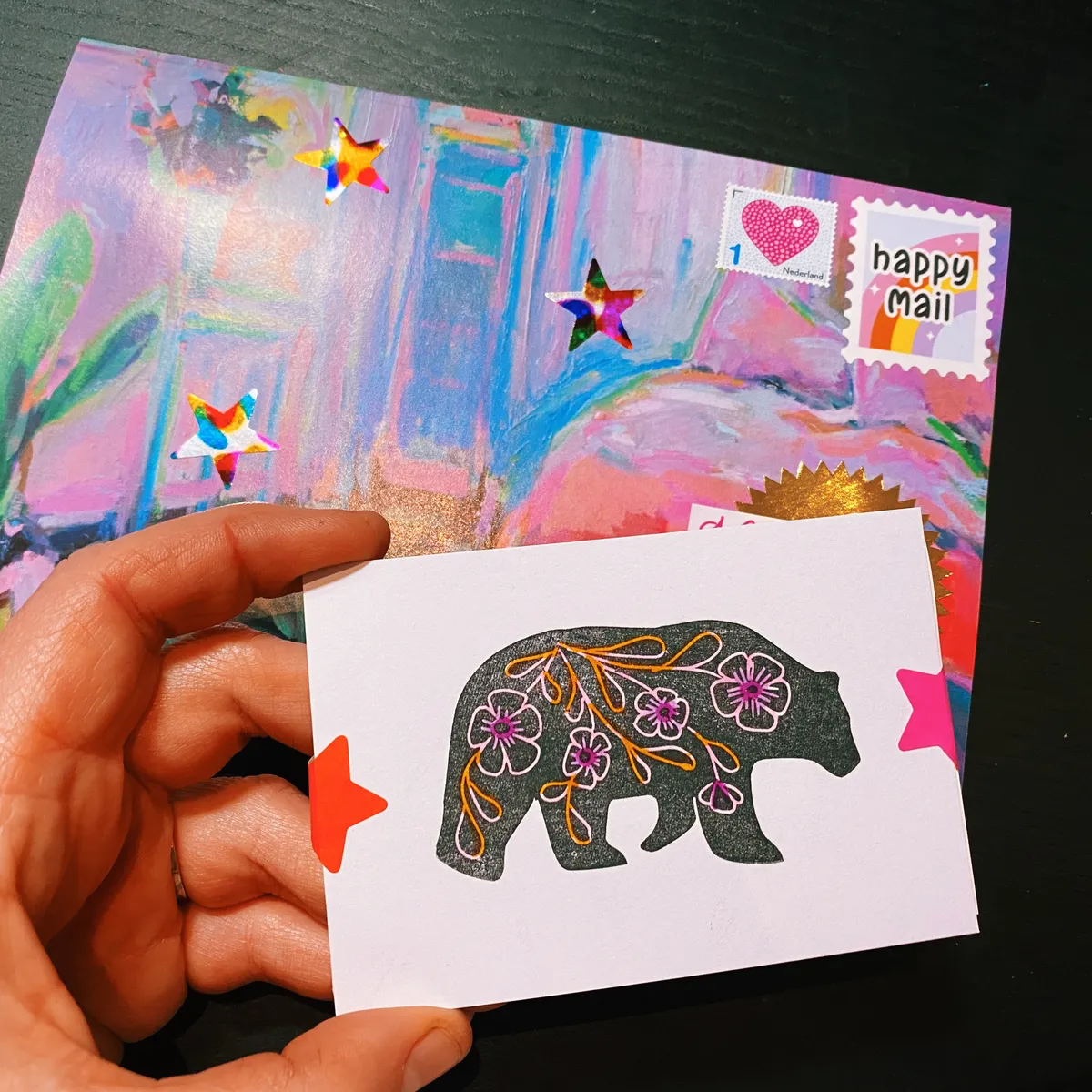 Mandy got a letter again this month. I got really happy making it because of all these happy colors!