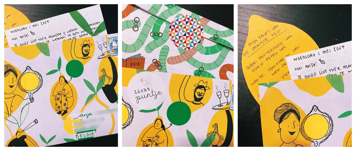Oops, I forgot to make pictures of my letter to Tjitske. I just made one from the envelope...
