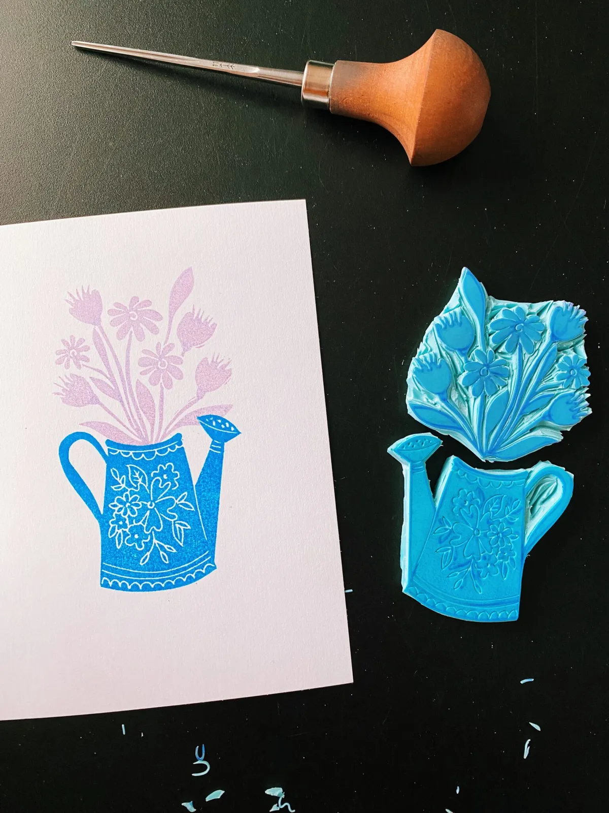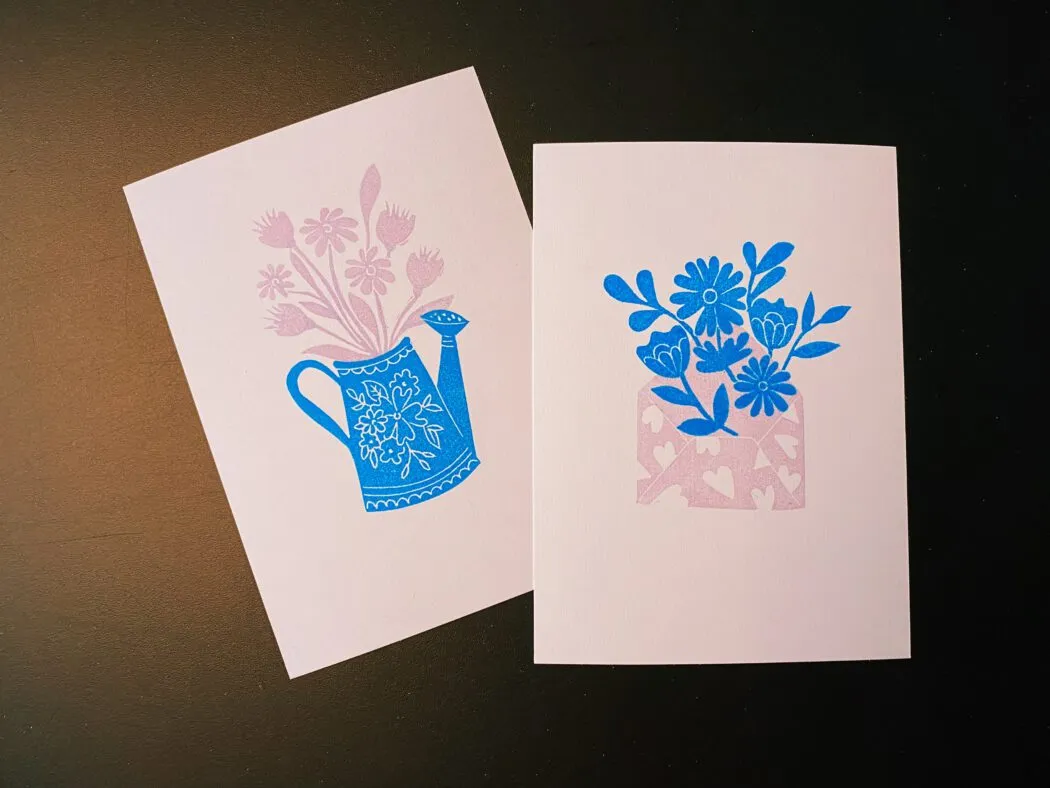 Mother's Day is slowly but surely approaching. To get a head start, I made the first cards today. Flowers in a watering can!