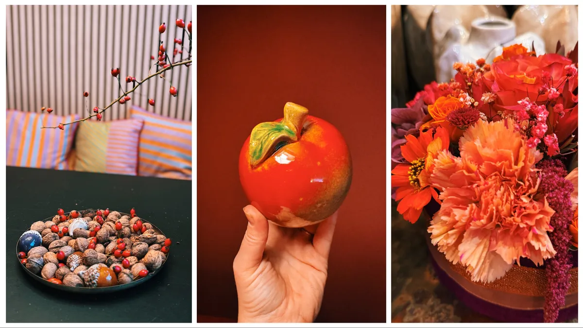 more cozyness at home > At the end of the month, the clocks changed to winter time, and I felt even more inclined to make our home cozy. A colleague gave me a large bag of walnuts, and I placed large rosehip branches in the red flower vase.
