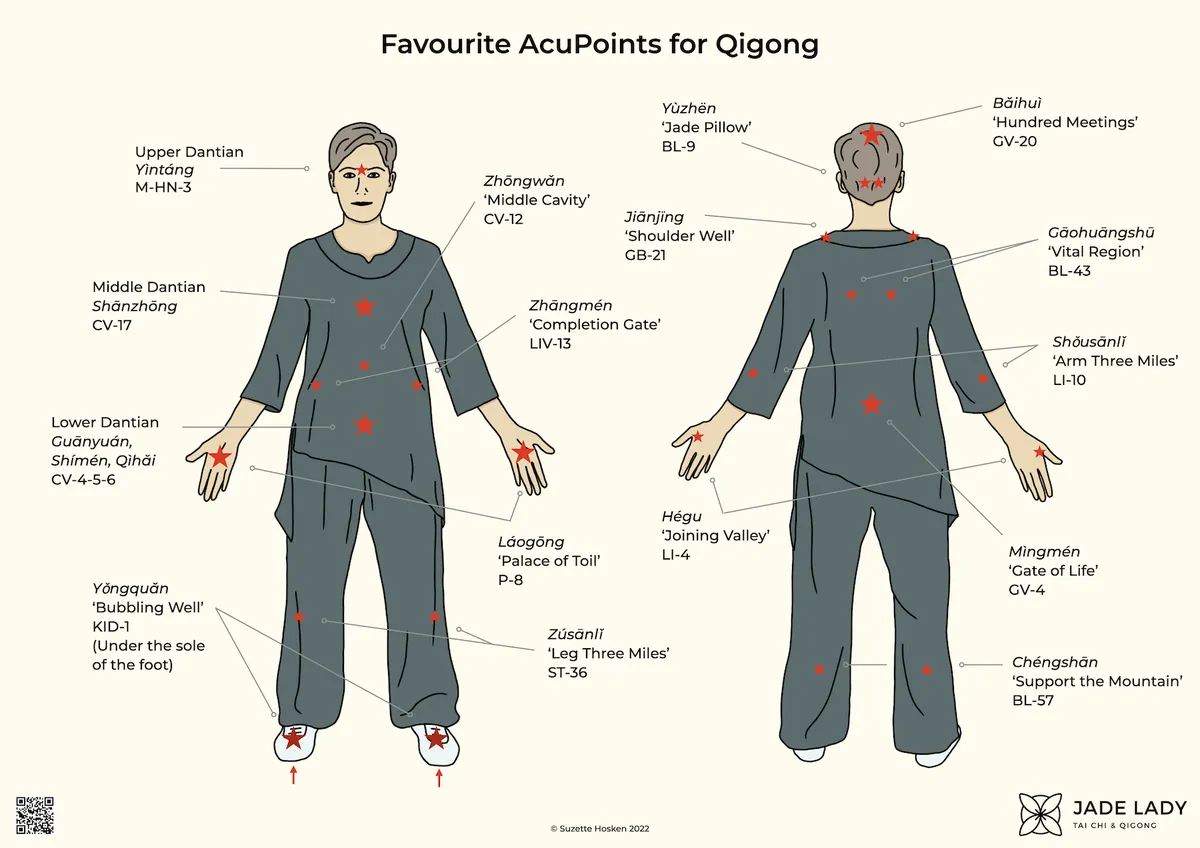 / in the first qi gong practice of the week we focussed on the acupressure point Zusanli (ST36). it regulates the stomach. you can see here where that is in the body. coincidentally, that is precisely the spot where my knees are always hurting.